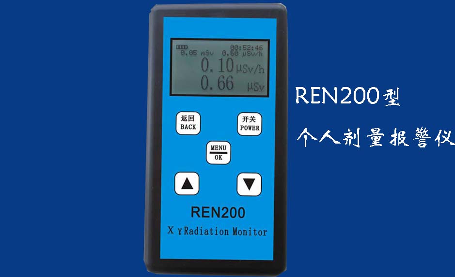 REN200A型X、γ輻射個(gè)人劑量當(dāng)量HP(10)監(jiān)測儀(簡稱:個(gè)人劑量報(bào)警儀)內(nèi)置高靈敏度蓋格計(jì)數(shù)管為探測器,主要用來監(jiān)測各種放射性工作場所的X、γ以及硬β射線的輻射,具有響應(yīng)快,測量范圍寬的特點(diǎn)。能顯示工作場所的劑量當(dāng)量率和累積劑量,更換電池時(shí),日期及累積數(shù)據(jù)能永久保存。可選配RenRiPersonal個(gè)人劑量管理軟件,該軟件可存儲(chǔ)多個(gè)人的歷史數(shù)據(jù),能記錄日累積、月累積、年累積、輻照時(shí)長、計(jì)算平均劑量率、扣除或不扣除本底輻射,且以文字和圖譜的方式展現(xiàn)數(shù)據(jù)。廣泛應(yīng)用于核電站、加速器、鋼鐵、化工、同位素應(yīng)用、工業(yè)X、γ無損探傷、放射醫(yī)療、鈷源治療、γ輻照、放射性實(shí)驗(yàn)室、核設(shè)施周圍環(huán)境監(jiān)測等領(lǐng)域中的工作人員進(jìn)行個(gè)人安全防護(hù)監(jiān)測及放射性提示。&nb